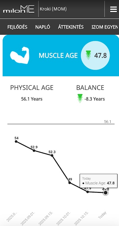 2025 augusztus 4-én kezdtem el a Kroki Kondiba járni. Alig két és fél hónap alatt több mint 8 évet fiatalodtak az izmaim a rendszeres, jól beállított edzésnek köszönhetően.